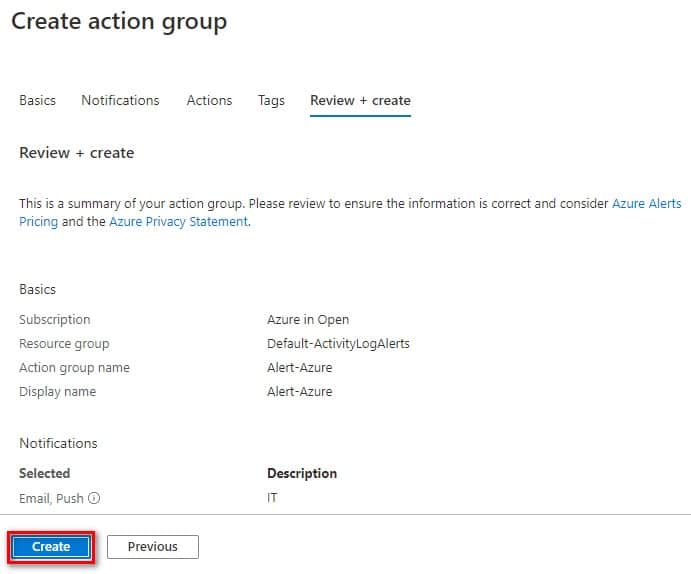 6. เลือก Create action group