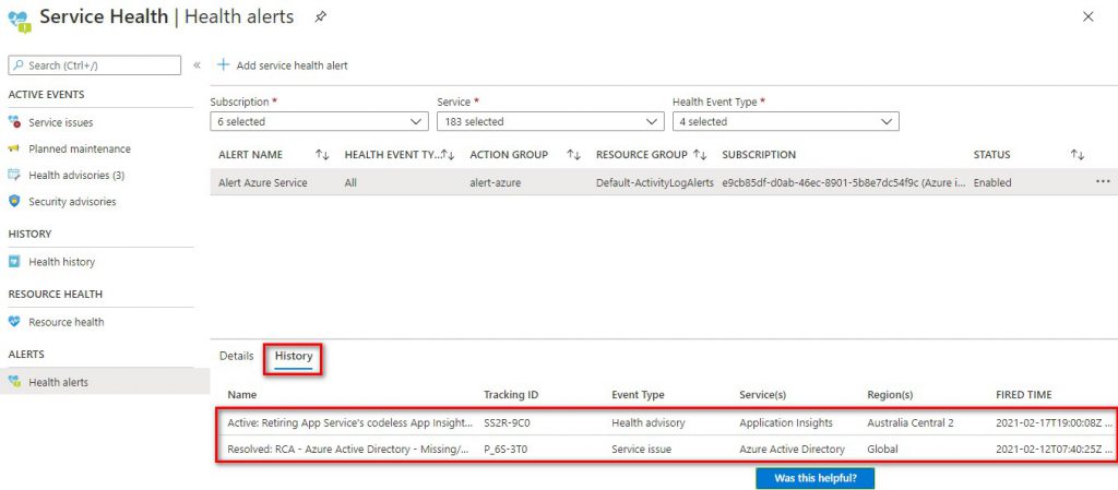 3. เลือก Add service health alert
