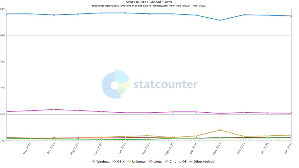 คอมพิวเตอร์ในปัจจุบัน มากกว่า 75% ทำงานด้วยระบบปฏิบัติการ Windows นั่นก็เพราะ Windows เป็นระบบปฏิบัติการที่มีอายุมาอย่างยาวนาน ทำให้ผู้ใช้เกิดความเคยชินจึงง่ายต่อการใช้งาน และเกือบทุกสายงานต้องพึ่งพาระบบปฏิบัติการ Windows ในการรันโปรแกรมต่างๆ