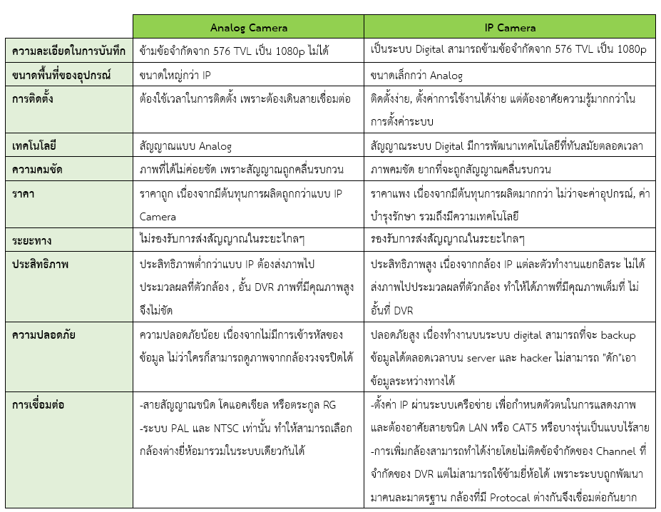 เปรียบเทียบกล้องวงจรปิดแบบ Analog และ IP