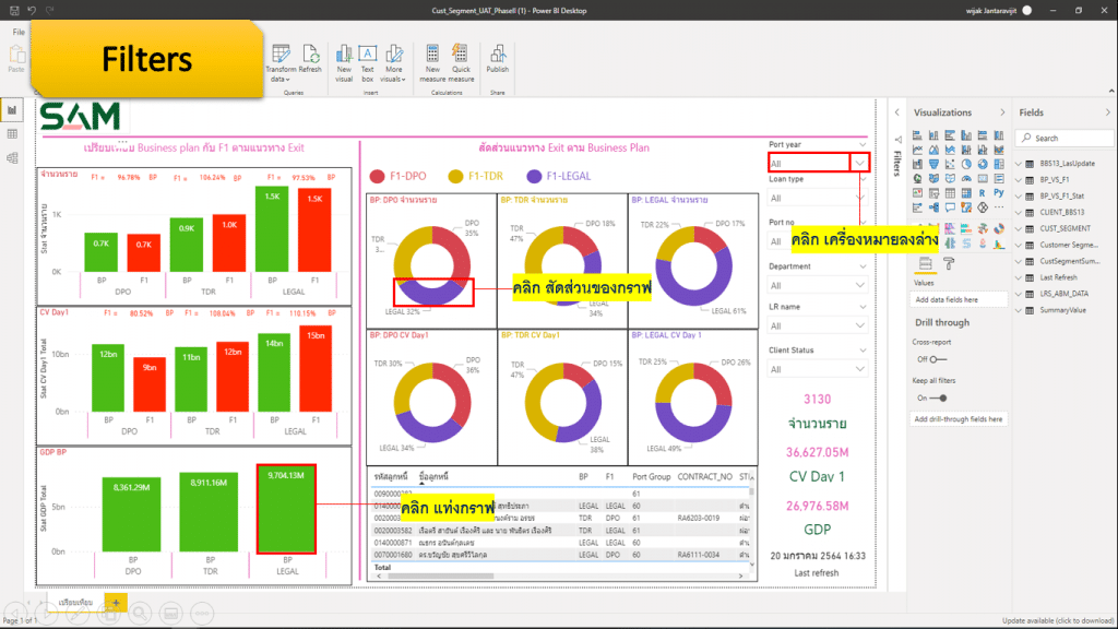 หลังจากทำการสร้างรายงาน (Report) ด้วย Microsoft Power BI เรียบร้อยแล้ว เราสามารถ Filters รูปแบบรายงานได้