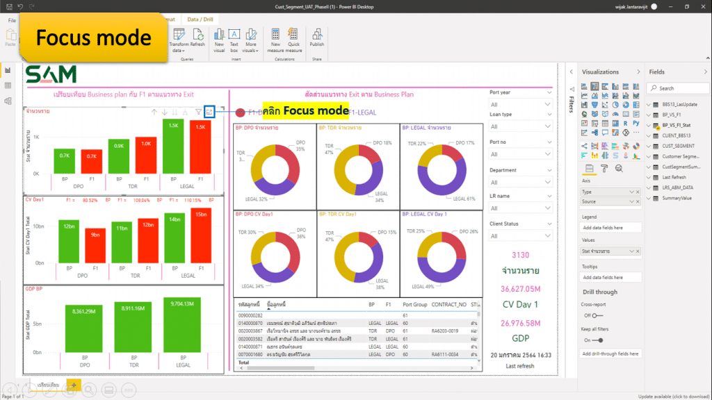 เมื่อเลือกแบบ Focus mode จะสามารถเรียกดู Report แบบเจาะจงกราฟหรือข้อมูลที่ต้องการได้