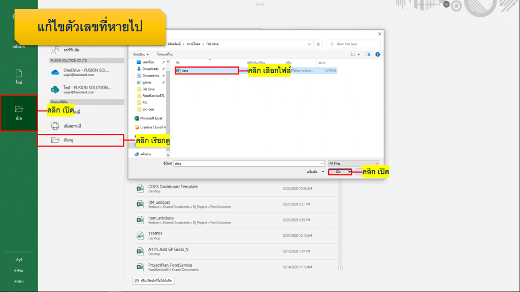 หาก Save ออกมาแล้วพบว่าข้อมูลตัวเลขบางส่วนขาดหายไป สามารถแก้ไขได้ วิธีดังรูป