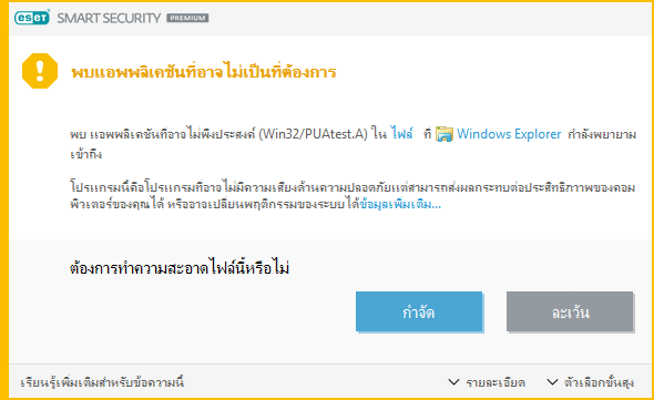 เมื่อตรวจพบแอพพลิเคชันที่อาจจะคุกคามกับคอมพิวเตอร์ของเราจะดำเนินการอย่างไร