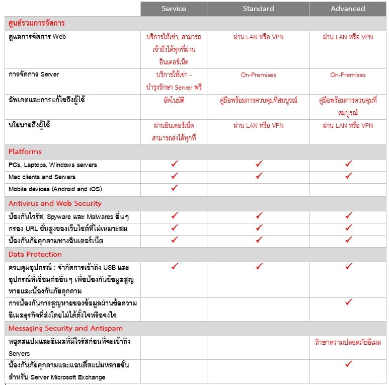 เปรียบเทียบผลิตภัณฑ์ของ Trend Micro