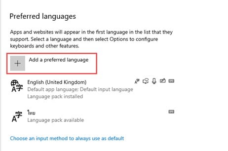 3. จะเปิดเข้าหน้า Languages แล้วให้คลิกปุ่ม Add a preferred language