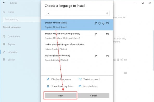 5. แล้วเลือกที่ English (United States) แล้วก็คลิกปุ่ม Next