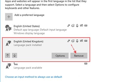 9. แล้วจากนั้นคลิกเลือก English (United Kingdom) แล้วก็คลิกปุ่ม Remove