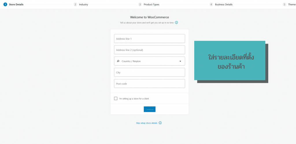 1. ในหน้าเริ่มต้นการทำงานของปลั๊กอิน ผู้ใช้จะต้องใส่ข้อมูลที่ตั้งร้านค้า ถนน เมือง และอื่นๆ ดังภาพที่ 3