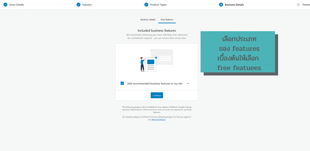 1. หลังจากนั้นระบบจะให้ผู้ใช้เลือก features การใช้บริการ โดยเบื้องต้นผู้ใช้สามารถเลือกที่ free features ก่อนก็ได้